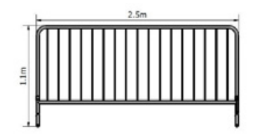 Visoke zaštitne ograde od pocinčanog željeza. Sidre se betonskim utezima sa pvc zaštitom. Mogućnost spajanja u niz i različitim smjerovima ovisno o potrebi. Lagane i lako prenosive. Pogodne za pregrađivanje otvorenih ulaza za koncerte, sajmove, manifestacije, evente, gradilišta.