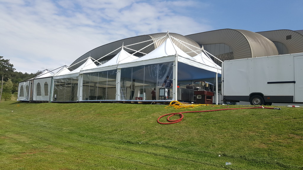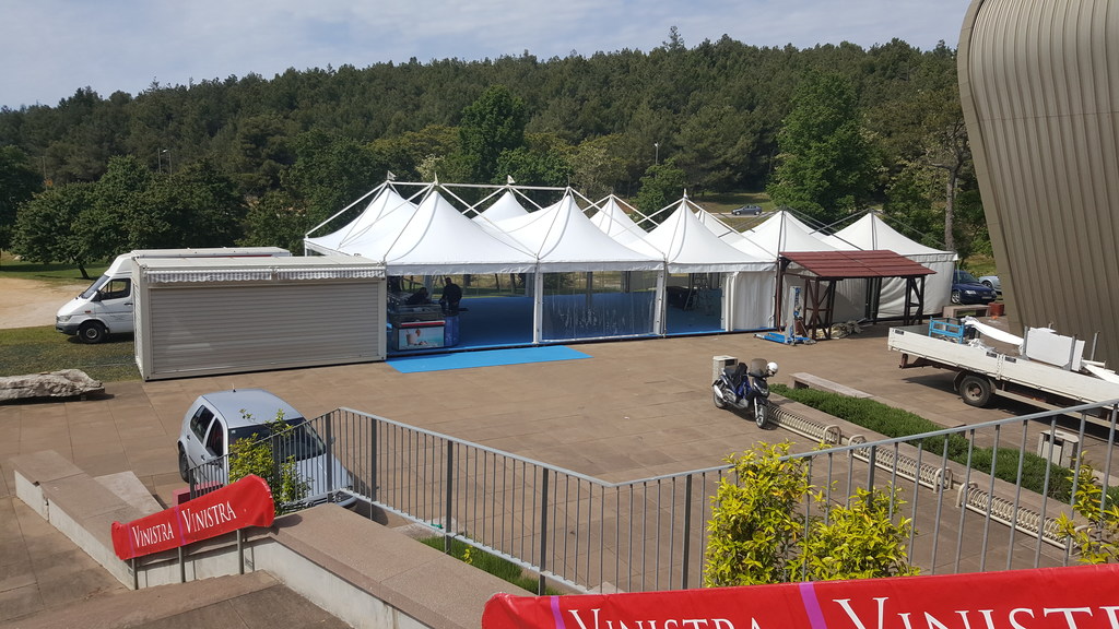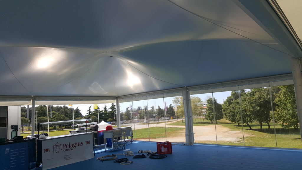 Pagode/gazebo 10x10m elegantnog izgleda. Pagode/gazebo su pogodne za sve vrste sajmova, vjenčanja i manifestacija. Konstrukcija je aluminijska sa bijelim ili prozirnim Serge Ferrari PVC ceradama od vodonepropusnog i negorućeg materijala.