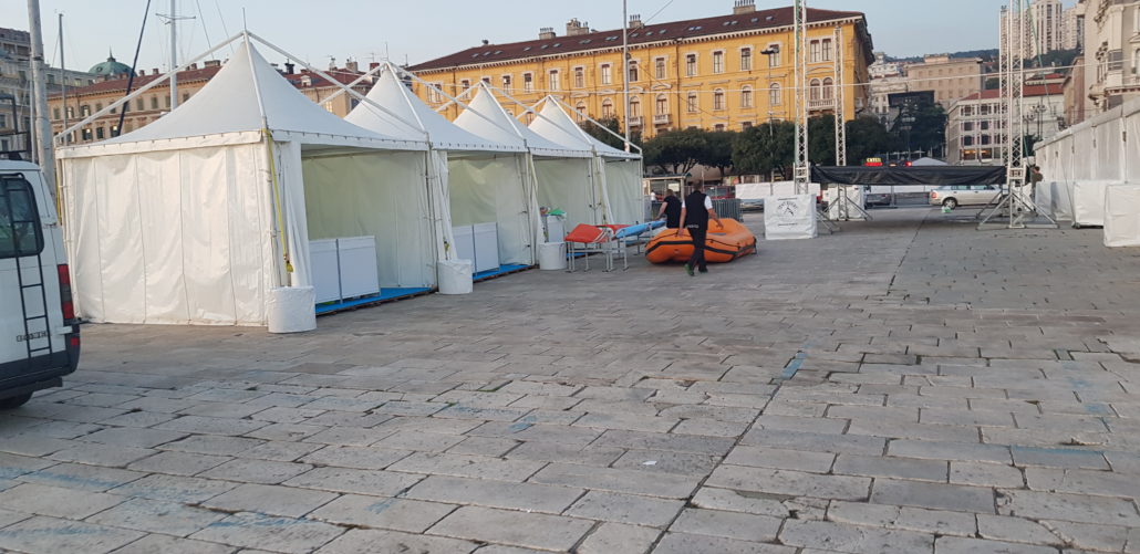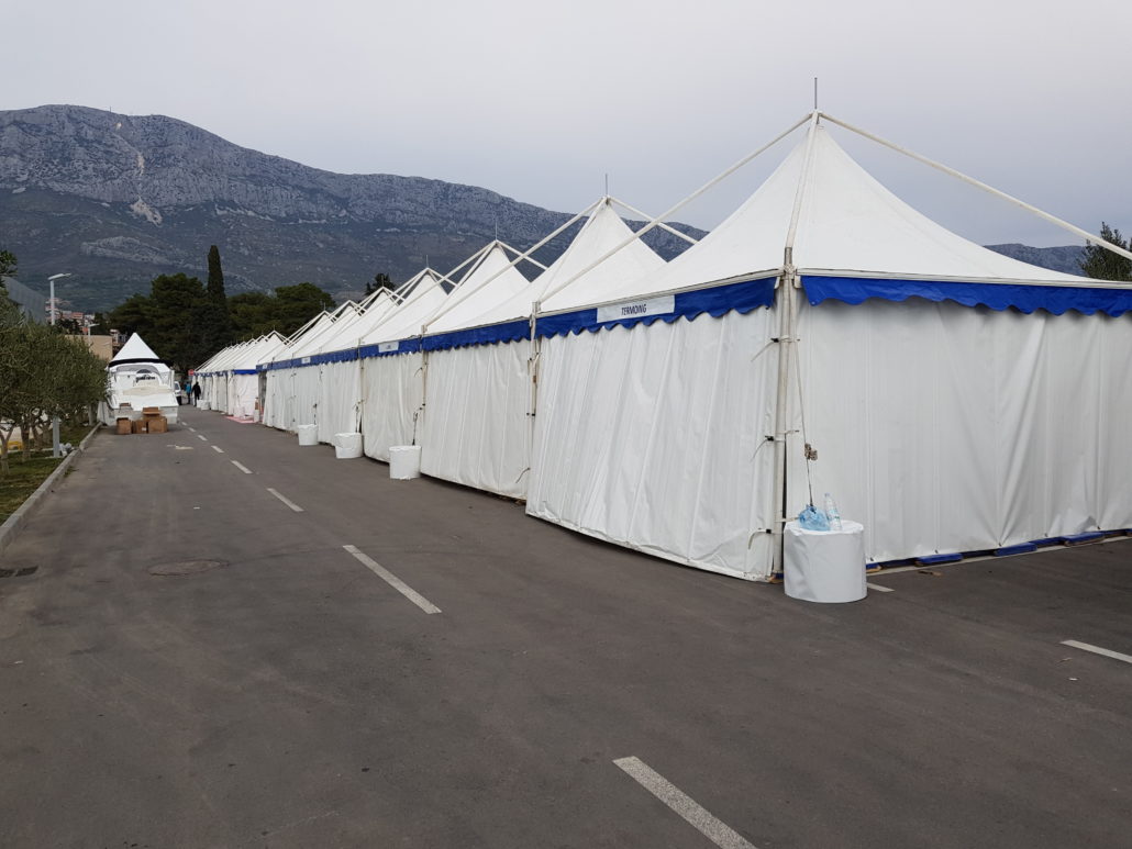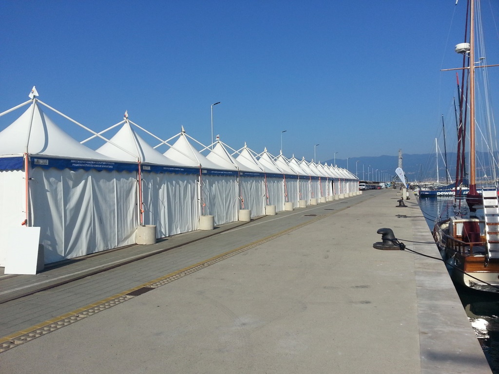 Pagode/gazebo dimenzija 3x3m od brendiranog proizvođača Giulio Barbieri. Pagode/gazebo su pogodne za sve vrste sajmova, vjenčanja i manifestacija. Konstrukcija je aluminijska s bijelim ili prozirnim Serge Ferrari PVC ceradama od vodonepropusnog i negorivog materijala.